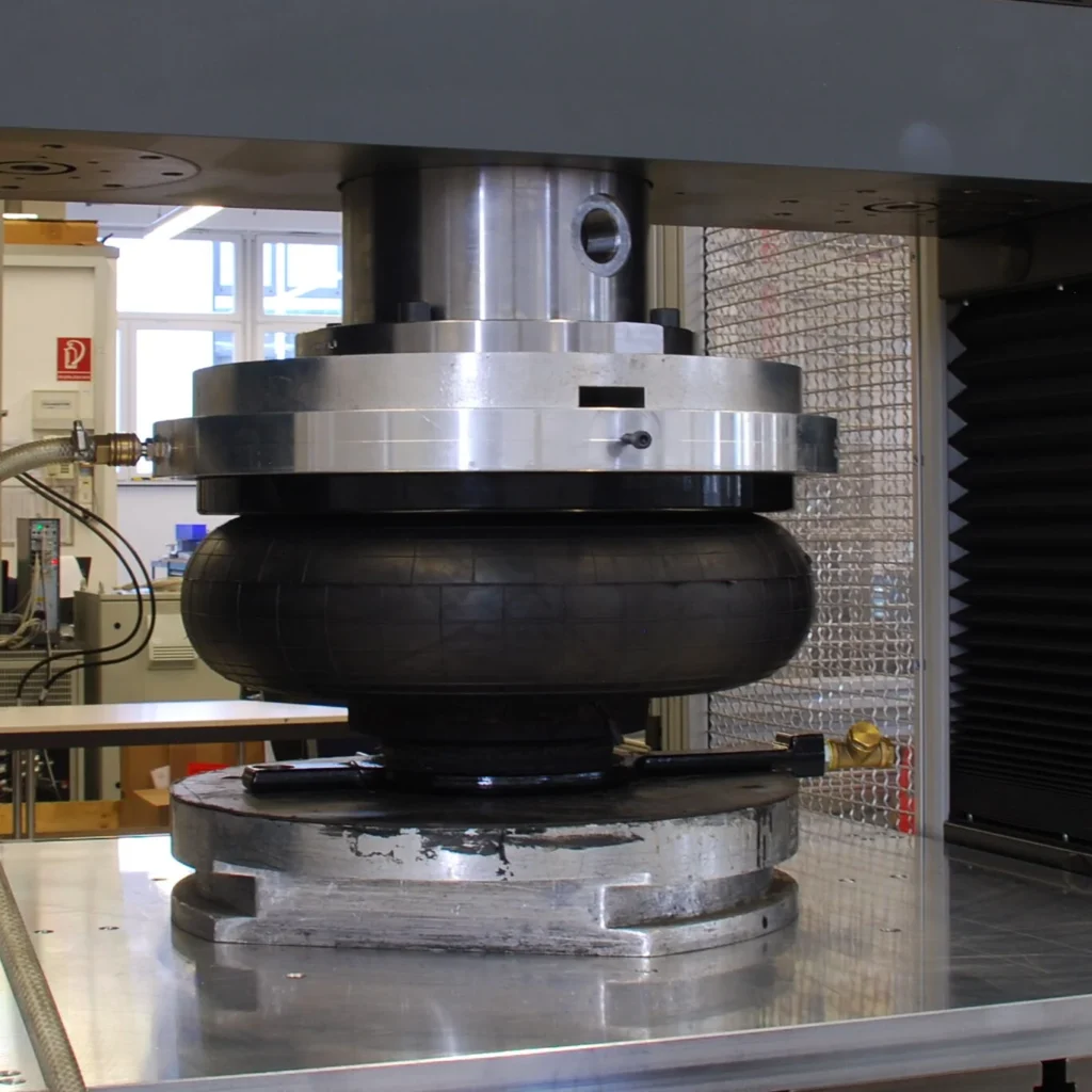 In the image above, we can see an optical device that requires extremely precise alignment to function properly. Due to the high sensitivity of the device, even the slightest vibration can affect its performance and accuracy. To mitigate this risk, M-20 pneumatic rubber bellows have been installed. These bellows help isolate the device from any external vibrations that might be caused by surrounding elements or equipment during the testing process. The importance of test accuracy in this case cannot be overstated, as even minor disturbances can lead to significant errors. By incorporating this vibration isolation solution, the optical device is protected, ensuring that the testing process is as precise and reliable as possible.
