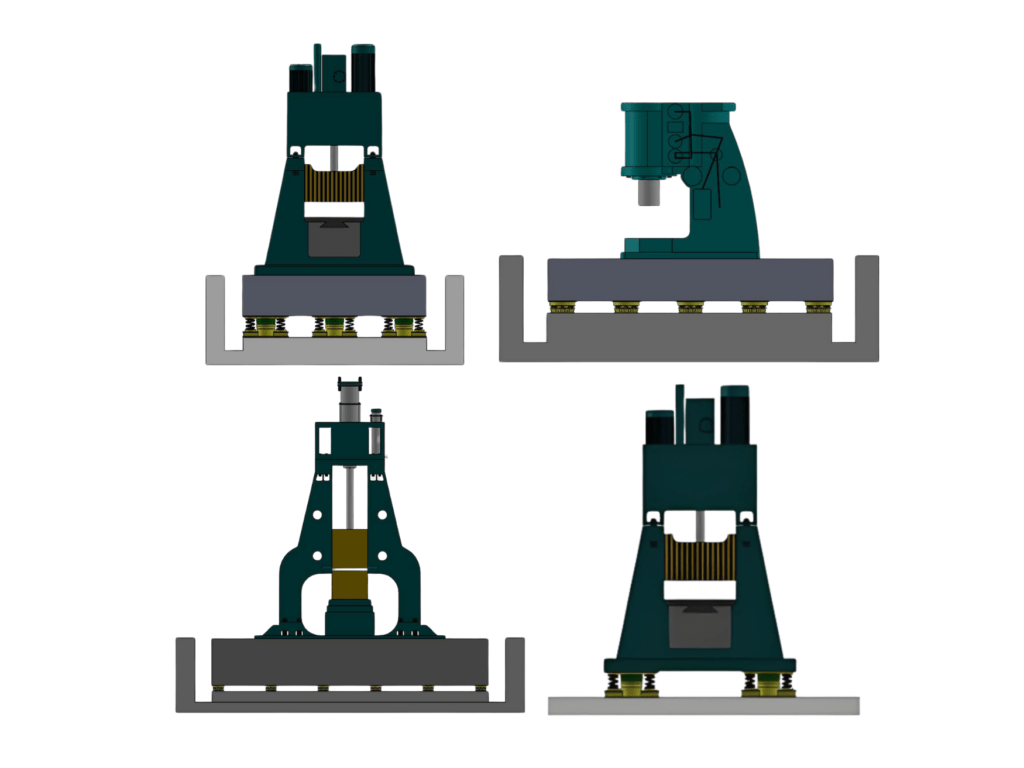 In the process of forging metal, part of the energy is used to shape the metal, while the remaining energy is transmitted to the ground, causing significant vibrations. As more high-precision testing equipment and machine tools are installed around forging hammers, it has become an international standard in the forging industry to install spring isolators and viscous dampers at the base of forging hammers.