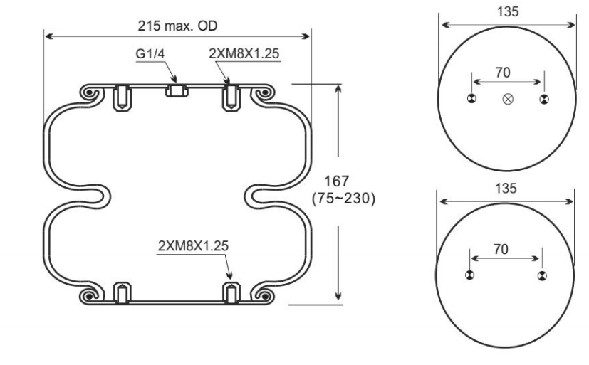 Avoid Using Below the Minimum Compressed Height: To prolong the lifespan of the air spring, it is crucial not to operate it below its minimum compressed height. Operating below this threshold can cause the rubber bladder to become overstretched, leading to premature wear and potential failure. Ensure the air spring is within the correct compression range during use.