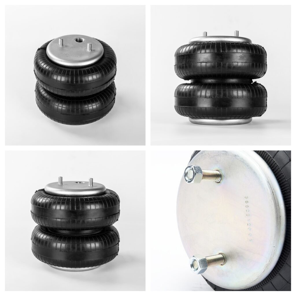 Compact and Durable Structure: The air spring features an integrated design that combines a rubber bladder with crimped metal plates, providing enhanced durability and stability.
