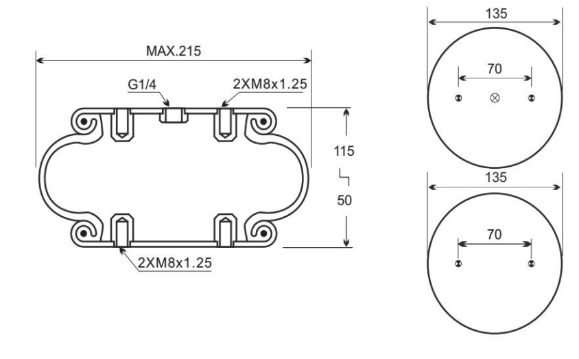 The FP-Type air spring functions by utilizing a rubber airbag that compresses and expands to absorb shocks and vibrations. As a load is applied, the internal air pressure adjusts to match the weight, enabling the air spring to maintain a steady height and efficiently isolate vibrations from external sources. Its design incorporates sealed end plates, eliminating the need for additional components and ensuring easy installation. This construction provides superior vibration dampening and impact absorption, improving comfort and safety. These air springs are ideal for use in various machinery and vehicles, delivering reliable performance in diverse applications.