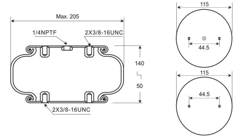 Avoid Using Below the Minimum Compressed Height: To prolong the lifespan of the air spring, it is crucial not to operate it below its minimum compressed height. Operating below this threshold can cause the rubber bladder to become overstretched, leading to premature wear and potential failure. Ensure the air spring is within the correct compression range during use.