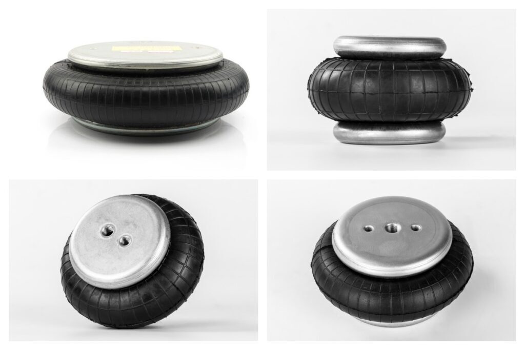 Compact and Durable Structure: The air spring features an integrated design that combines a rubber bladder with crimped metal plates, providing enhanced durability and stability.