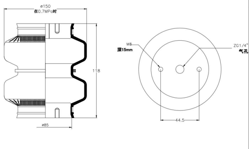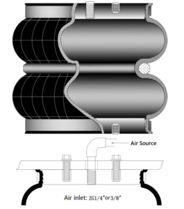 Avoid Using Below the Minimum Compressed Height: To prolong the lifespan of the air spring, it is crucial not to operate it below its minimum compressed height. Operating below this threshold can cause the rubber bladder to become overstretched, leading to premature wear and potential failure. Ensure the air spring is within the correct compression range during use.
