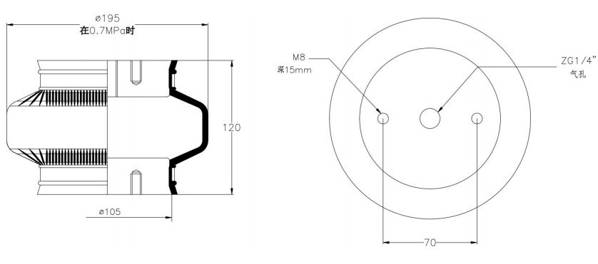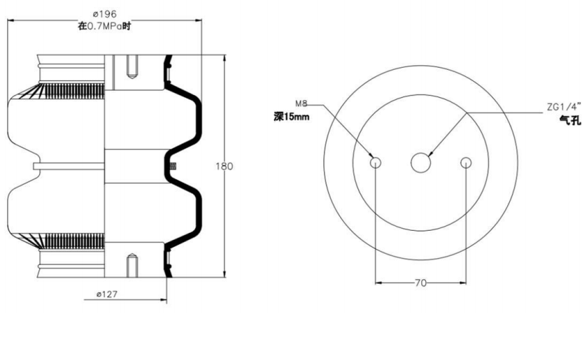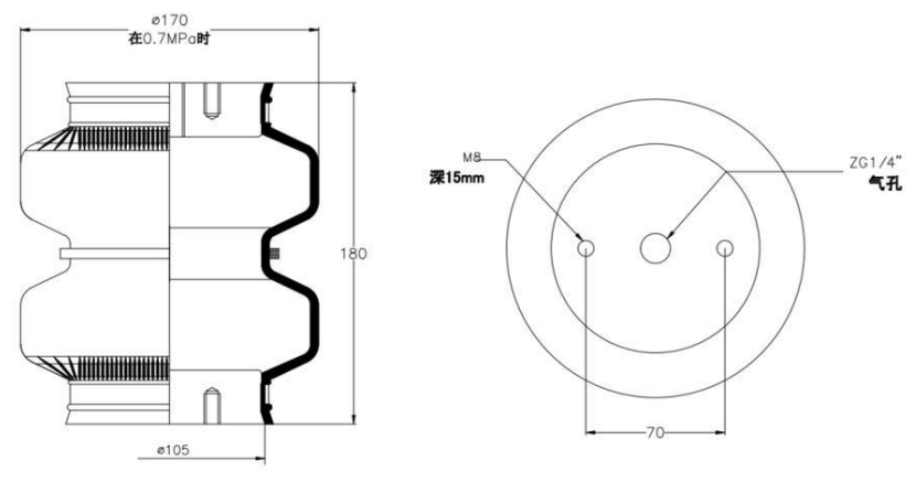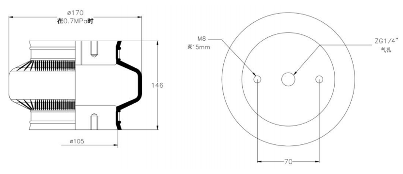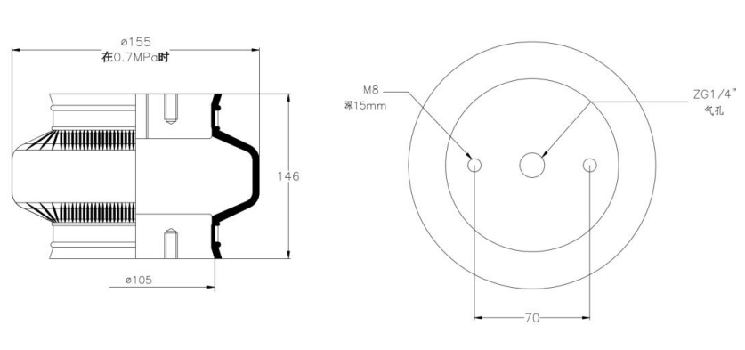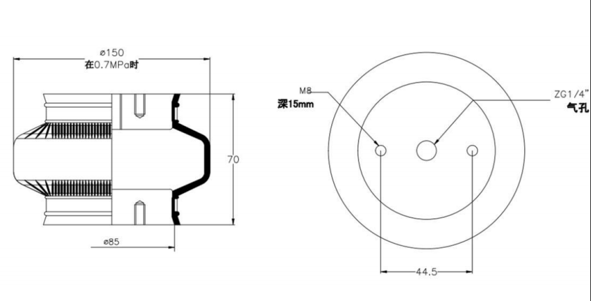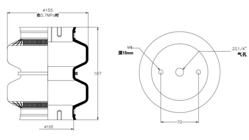 Do Not Use at a Pressure Exceeding 0.7 MPa: The air spring must be operated within the specified pressure limits to maintain optimal performance and safety. Exceeding a pressure of 0.7 MPa could lead to over-stretching of the air spring, compromising its structural integrity. Always check and regulate the air pressure according to the manufacturer’s recommendations.