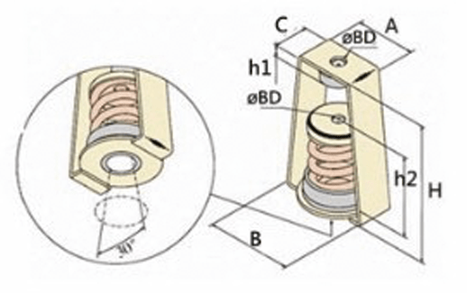 The HTA Hanging Spring Isolator is designed with several key features to provide effective vibration isolation, stability, and flexibility. Here are the main design elements: