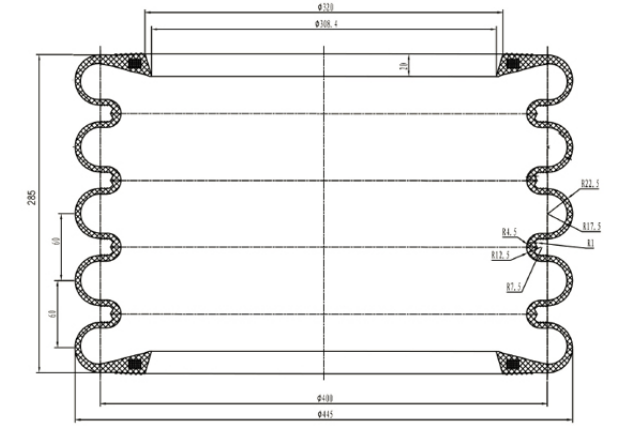 The ZS Series air springs are made up of multiple layers of air bags (typically ranging from one to five layers), which can provide varying degrees of vibration isolation based on the load and operational conditions. These air bags are filled with air or gas, and their design allows them to expand and contract under pressure.