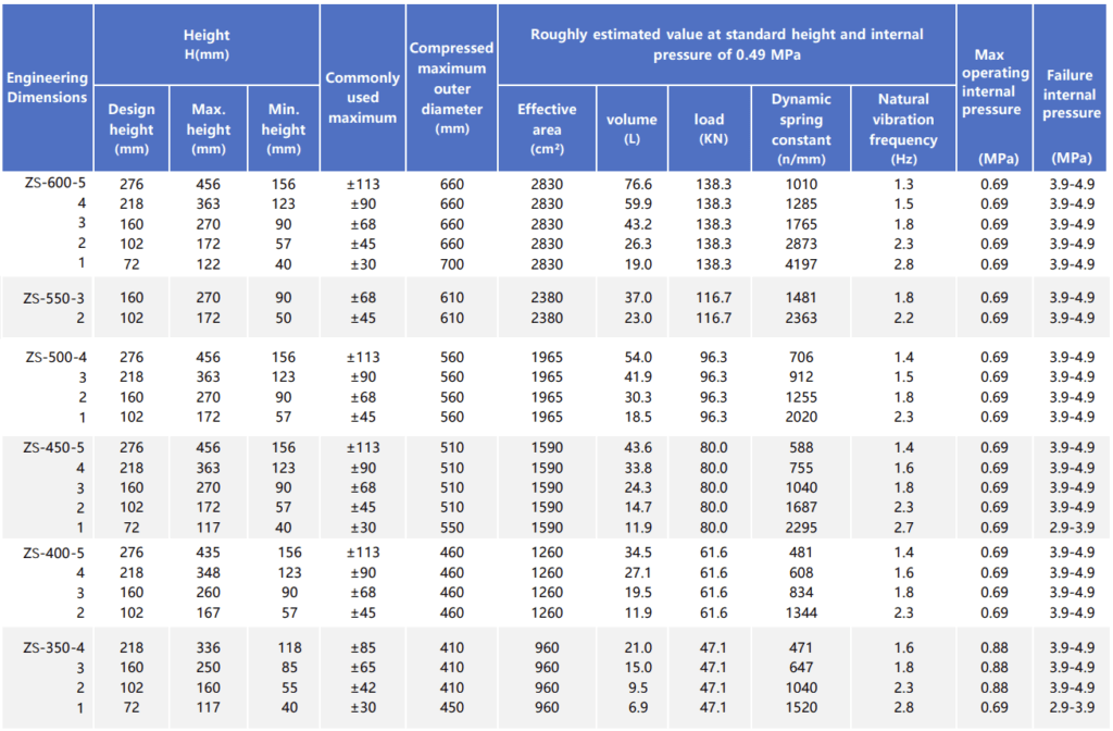 Multi-Layer Air Bag Design: The ZS series offers configurations with one to five layers of air bags, providing different levels of vibration isolation to meet the demands of various working loads.